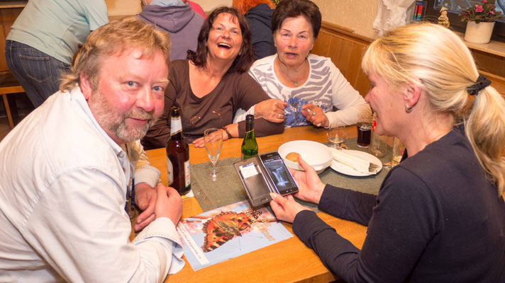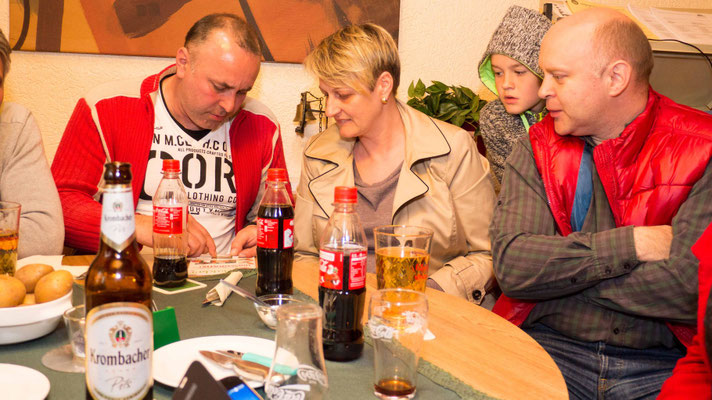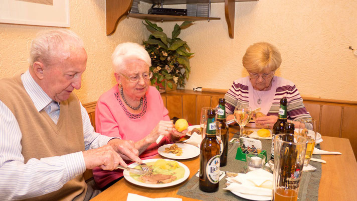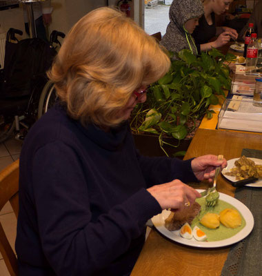 Dieses Jahr war die Bude voll, um das einmal etwas salopp auszudrücken. Das Essen war von Christa und Heidi vorbereitet worden mit viel Liebe und Aufwand. Die Kräuter waren wunderbar kleingehackt, die Soße war grün und wohlschmeckend. Der Tafelspitz war zart und an den Kartoffeln hat sich fast jeder die Finger verbrannt. Mit einem Wort, es war gelungen.