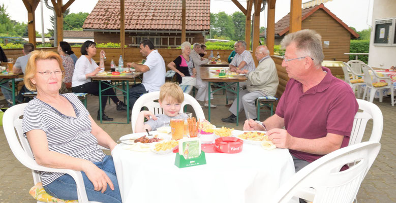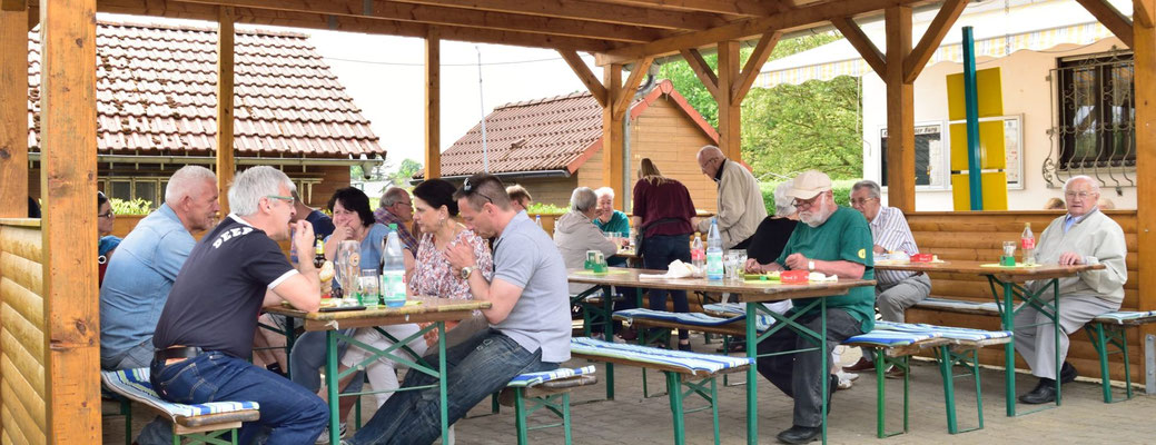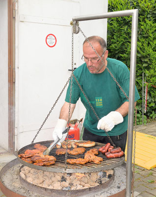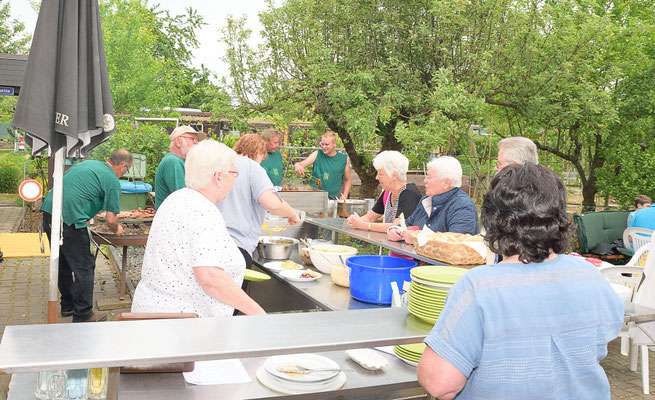 Pünktlich ab 12:00 Uhr wurde die Außentheke geöffnet und er Ansturm auf die angebotenen Bratwürste, Steaks, Nierenspieße und Salate begann.