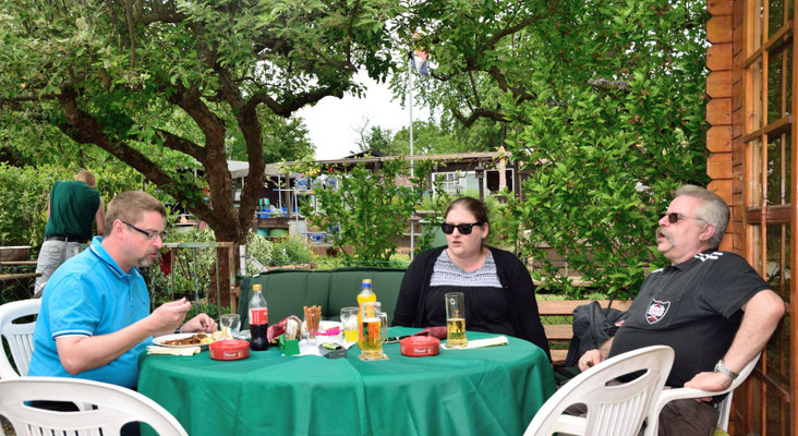 Nachdem alle gut gesättigt waren, unterhielt man sich über dieses und jenes bei einem kühlen Gläschen Bier um gegen 15:00 Uhr das Schlemmen mit leckerem hausgemachten Kuchen und Kaffee fortzusetzen.